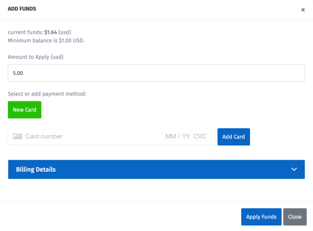 When the Edit Profile panel appears, scroll down to the payment methods box. From here you can add a credit card to your account and select the amount of money you wish to apply.